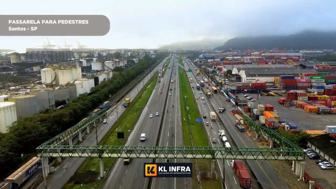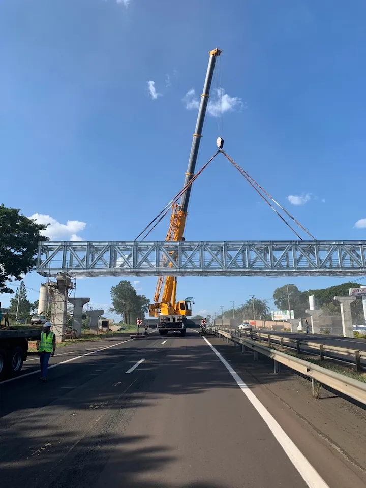 Projetamos e executamos estruturas em aço e concreto armado, unindo agilidade na montagem à máxima durabilidade exigida pelo tráfego intenso.